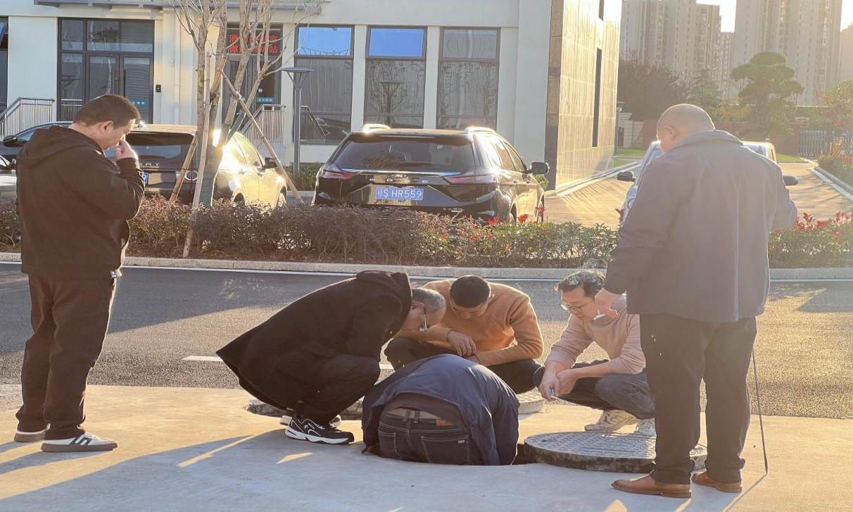 接到訴求后,城市供水公司客戶服務(wù)中心迅速響應(yīng),第一時(shí)間組建專項(xiàng)查漏小組,攜聽音桿、管網(wǎng)檢測儀等專業(yè)設(shè)備趕赴現(xiàn)場。面對廠區(qū)環(huán)網(wǎng)狀管網(wǎng)布局復(fù)雜、管線密集且部分埋深較深的排查難點(diǎn),先對總閥門進(jìn)行檢測,通過聽音桿捕捉到明顯跑水聲,隨后逐一排查下水井蓋,發(fā)現(xiàn)多處閥門被積水淹沒,部分井內(nèi)清晰探聽到漏水聲,查漏小組立即采用"閥門排除法",通過分段關(guān)閉閥門、監(jiān)測壓力變化,聽音辨位,逐步縮小排查范圍。經(jīng)過嚴(yán)謹(jǐn)檢測,最終確定兩處漏點(diǎn)位置。經(jīng)開挖驗(yàn)證,兩處破損管道與判斷完全一致。